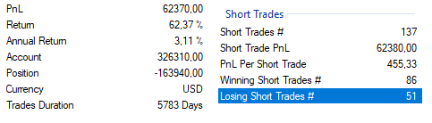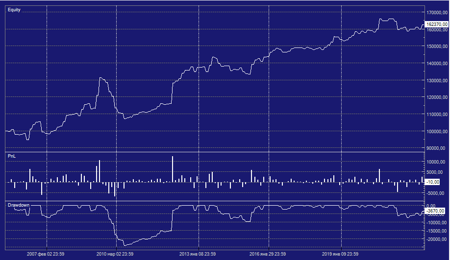 Simple backtest strategy by 1 contract, with commission. Only short.