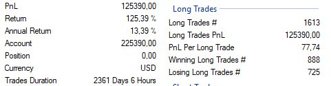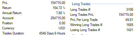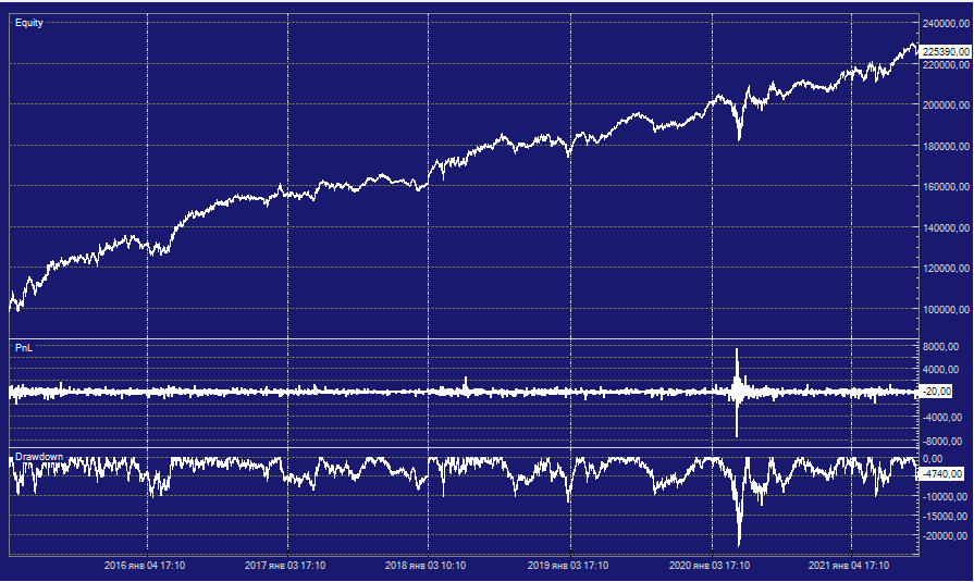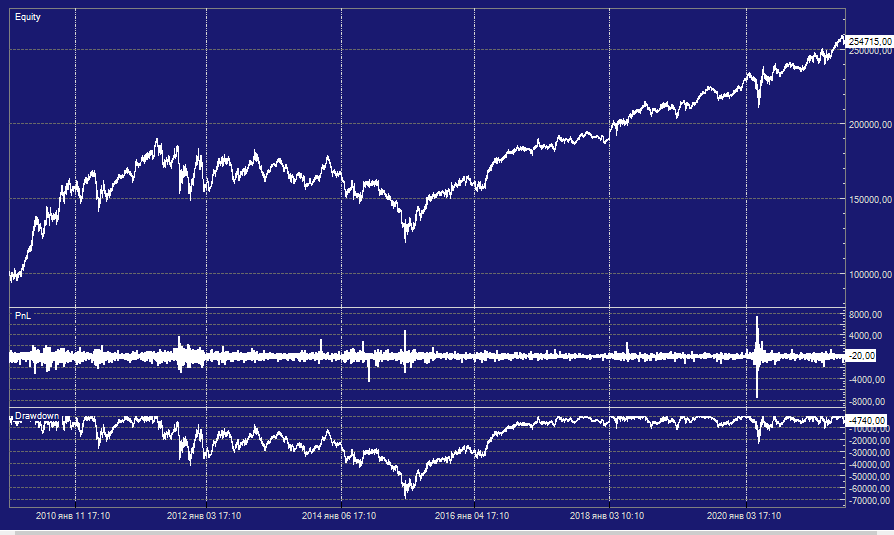 Intraday. Index RTS. 2005-2021Trades 3106, %Win 54, Annual Return 7.8%IlyaJul 12, 20241ShareMOEX . Futures index RTS. Timeframe 10min. Simple backtest strategy by 1 contract, with commission. Only long.2009-20212015-2021RulesEnter Long:if time 17:10Exit:EOD